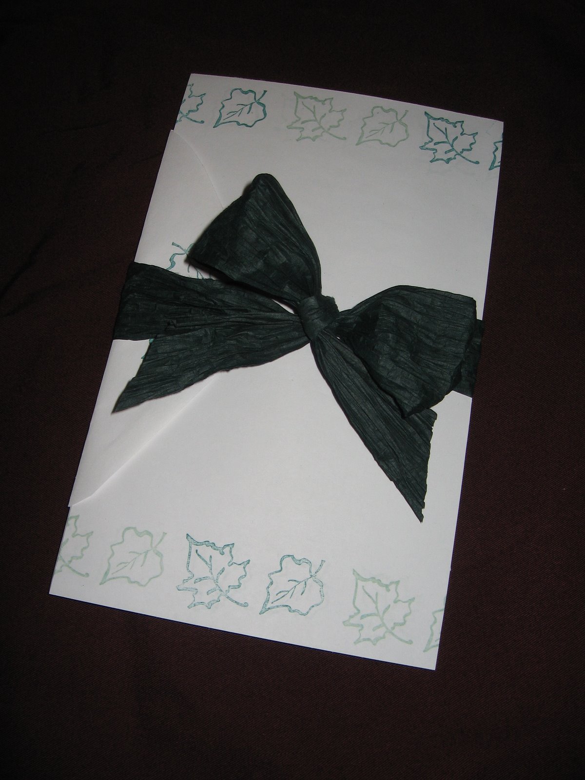 For this particular set of stationary (which I made for my mother-in-law, who loves to write long letters) I used some of the paper from a blank pad of paper. The pads of paper had 100 sheets each I and got them on sale for 2/$1 at Walgreens. I also got envelopes on that same sale and I decorated some envelopes to go with them. I used only one stamp for this set of stationary. Usually for stationary you don't want it too busy so you don't need much. I did use two different colors of green ink. If you don't have stamps you could make a cute set using thumb print pictures (this would be especially cute if a child was doing this for their mother or grandmother) or you could do a quick watercolor picture in the corner of each paper.