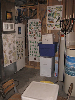 Next to the fridge I decided to make a gift center. I buy quite a lot of gifts ahead of time and I had them in boxes. I was able to fit most of them in this old white file cabinet (that I had been thinking about getting rid of.). On top of the file cabinet is a rubbermaid tote where we keep wrapping supplies (gift bags, ribbons, bows, boxes and recycled wrapping paper) On top of that tote is another box with gifts in it. I am trying to use up the gifts I have instead of buying any more this year so hopefully I will be able to get rid of this box soon and just have the file cabinet for gifts. In between the file cabinet and water heater I have a tall skinny box which has our rolls of gift wrap in it.