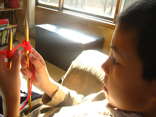 Today knitting was the main project of the day. My sister Keren was over and was wanting help in learning how to follow a knitting pattern and wanting to try doing a cable stitch. I had fun helping her and then soon found I had a whole line-up of students!