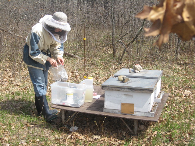 This afternoon I checked on them and I did give them some sugar water in the feeder as well as a pollen patty. I am doubtful that they need any feeding at all as we have had an early spring and their is both pollen and nectar available but I am trying to stay on the safe side.